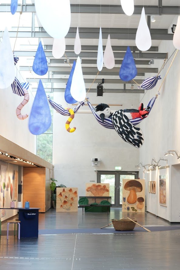 I Vandrehallen Kunsthal er der i den taktile børneudstilling ‘Den lille natur’ sat fokus på illustratoren Lena Nicolajsens tegninger til bøgerne, Den lille Fest, Den lille regn og Den lille sne.